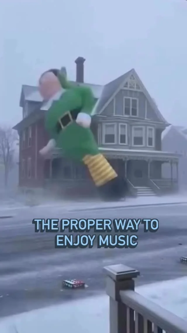 Photo of a music mixing studio with a large screen displaying music editing software, surrounded by studio speakers, a skull ornament, and various audio equipment. Green and yellow lighting illuminates the scene.